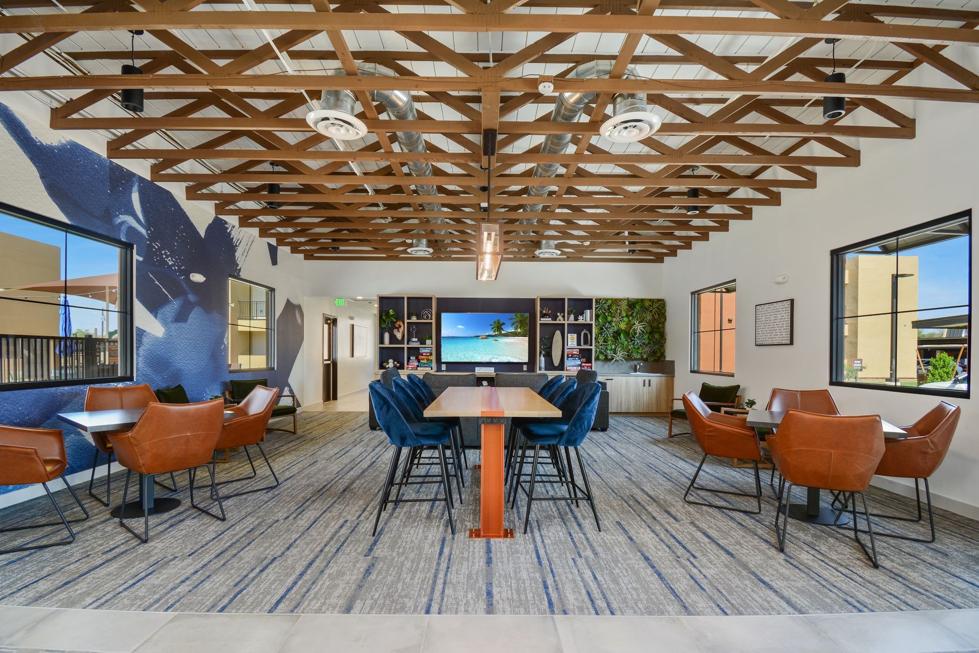 park, playground, yoga lawn, cornhole, package lockers,